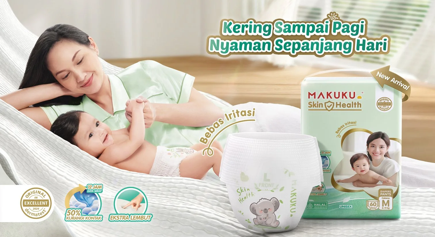 Now, Moms don't need to worry anymore about changing the baby's diaper at night. Ensure your little one stays comfortable, sleeps soundly, and is free from diaper rash with MAKUKU Skin Health.