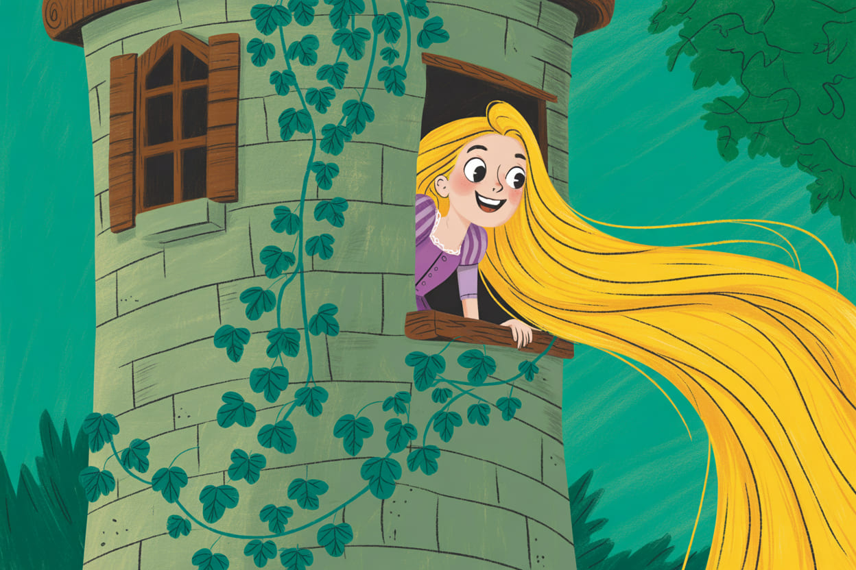 Rapunzel adalah gadis dengan rambut sangat panjang dan berkilau. Ia tinggal di menara tinggi tanpa pintu. Wanita yang menjaganya berkata bahwa dunia luar berbahaya. Rapunzel pun hanya bisa melihat dunia dari jendela setiap hari.