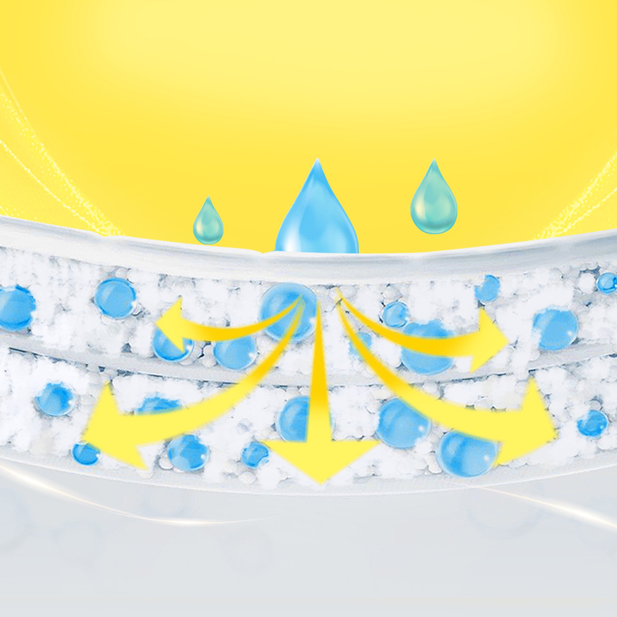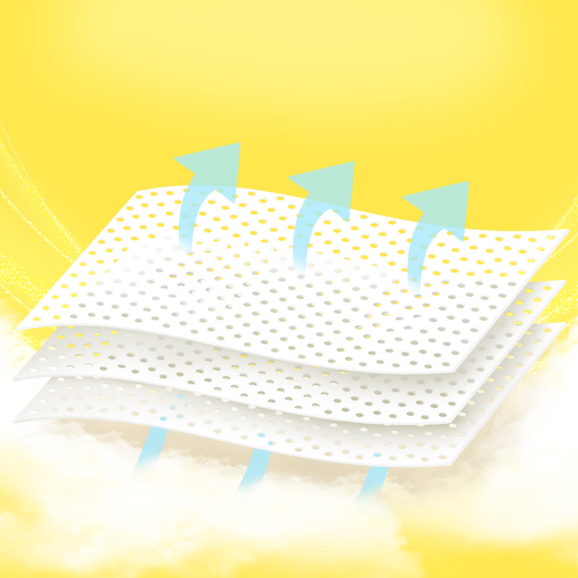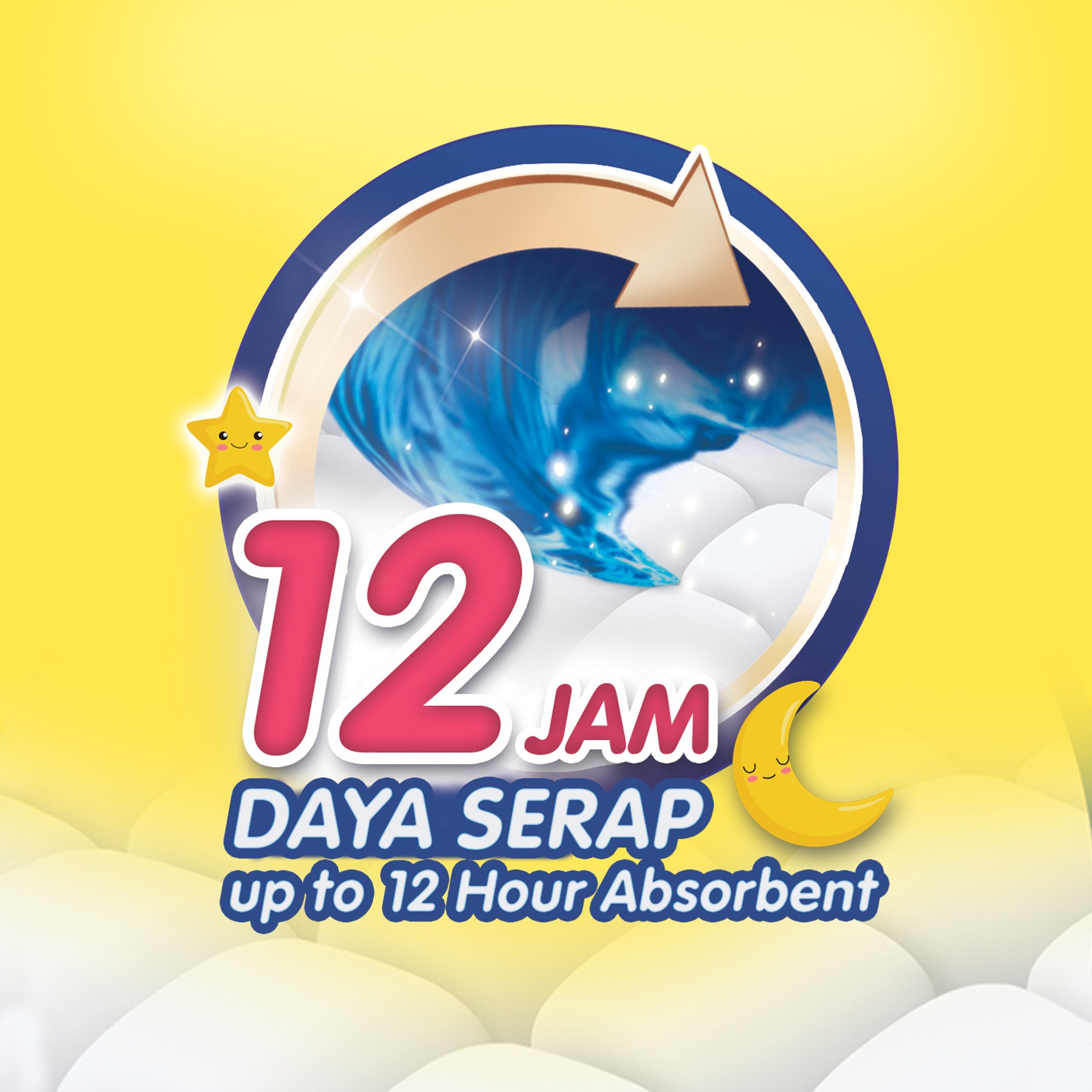 Menjaga permukaan popok tetap kering selama 12 jam, sehingga dapat menjaga kelembaban pada popok dan kulit bayi