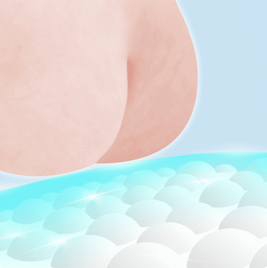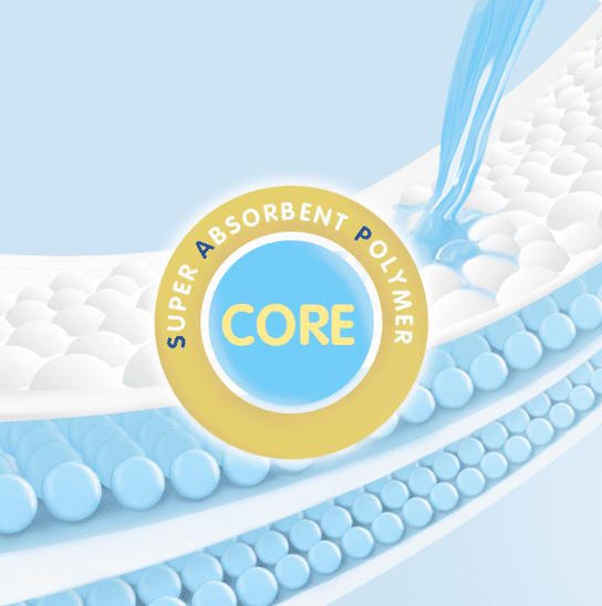Memastikan daya serap tinggi, membuat permukaan lebih kering, anti gumpal, dan efektif mengurangi risiko ruam popok