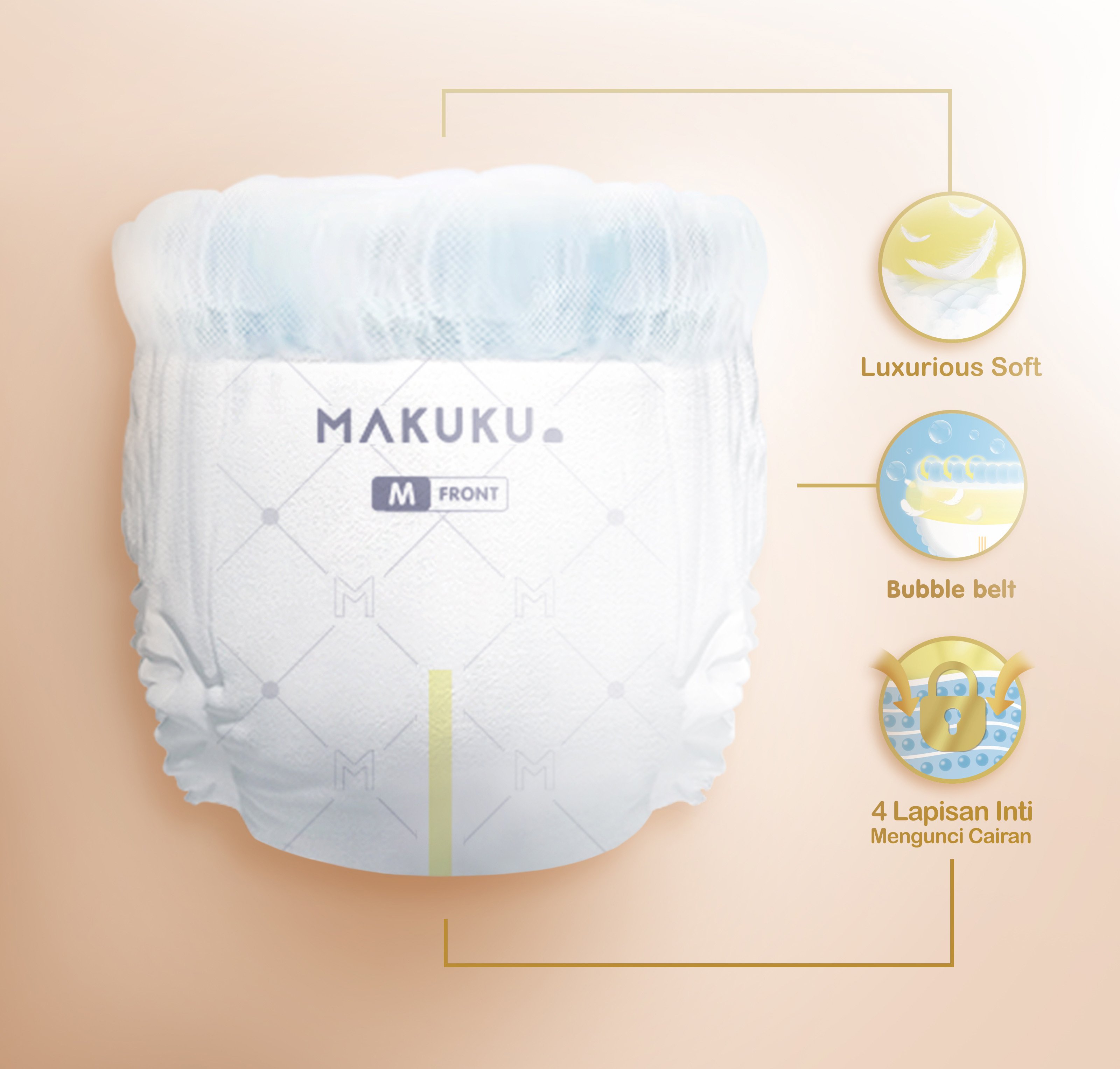 Popok Anti Gumpal Pertama di Indonesia dengan teknologi SAP Thin Core. Dirancang dengan kualitas premium, MAKUKU Pro Care hadir dengan kelembutan yang mewah, senyaman tidak pakai popok, anti gumpal, untuk kenyamanan maksimal si Kecil.