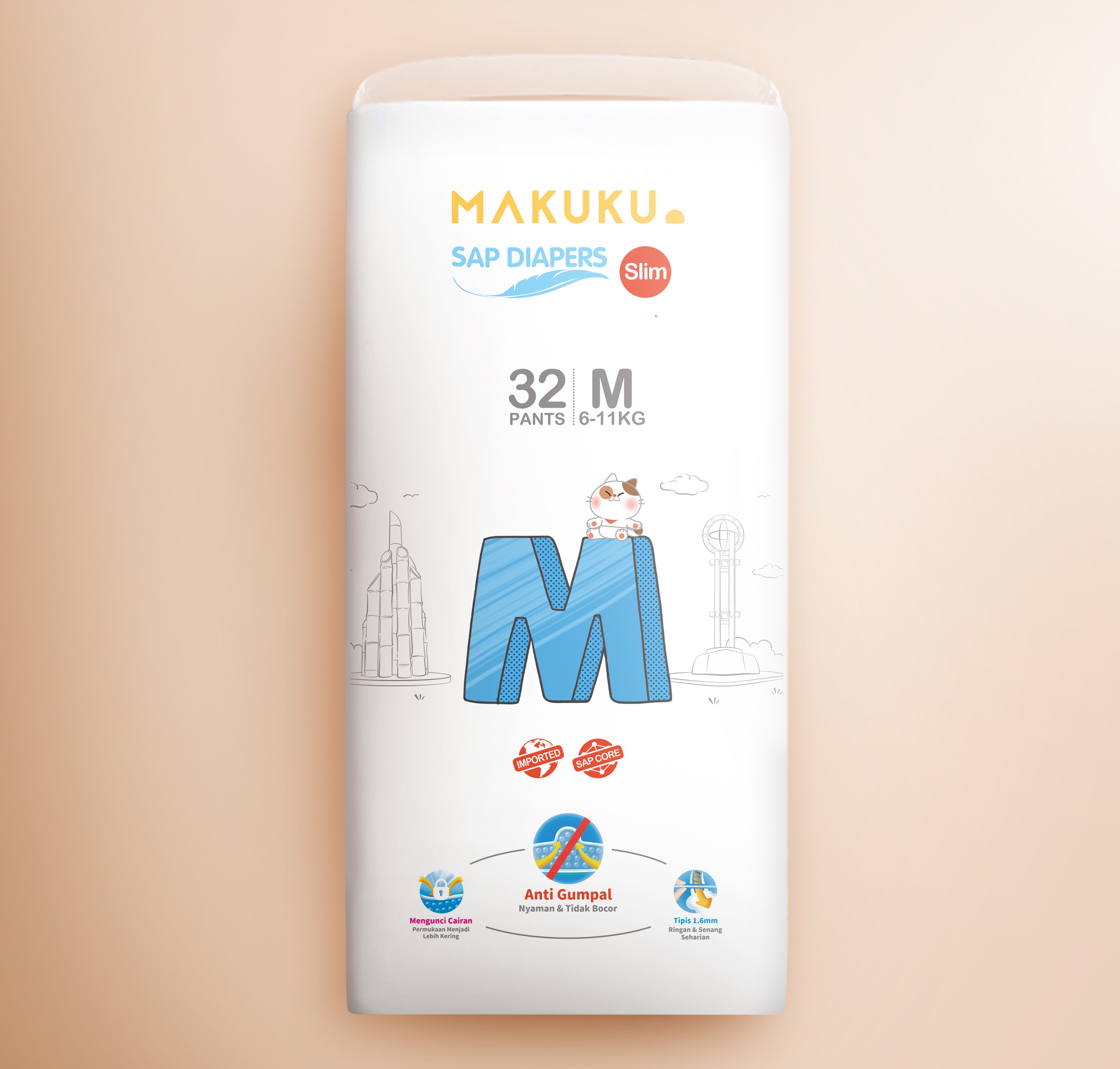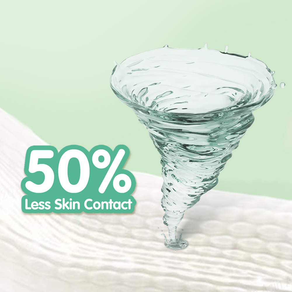 MAKUKU Skin Health dengan bantalan timbul adaptif mengurangi kontak kulit hingga 50% untuk bantu cegah iritasi. Dilengkapi ADL layer yang cepat menyerap dan telah teruji dermatologis untuk menjaga kulit si Kecil tetap sehat dan nyaman.