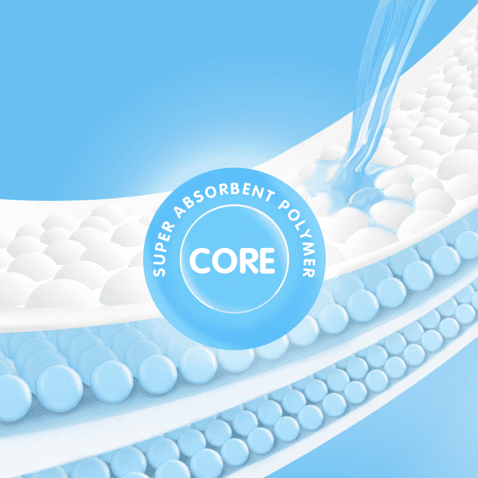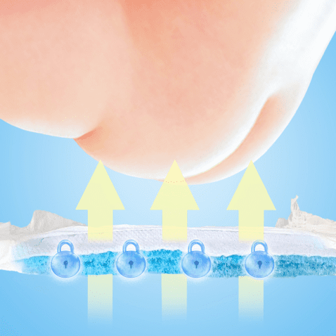 Maksimal mengunci cairan membuat permukaan lebih kering, anti gumpal, dan efektif mengurangi risiko ruam popok