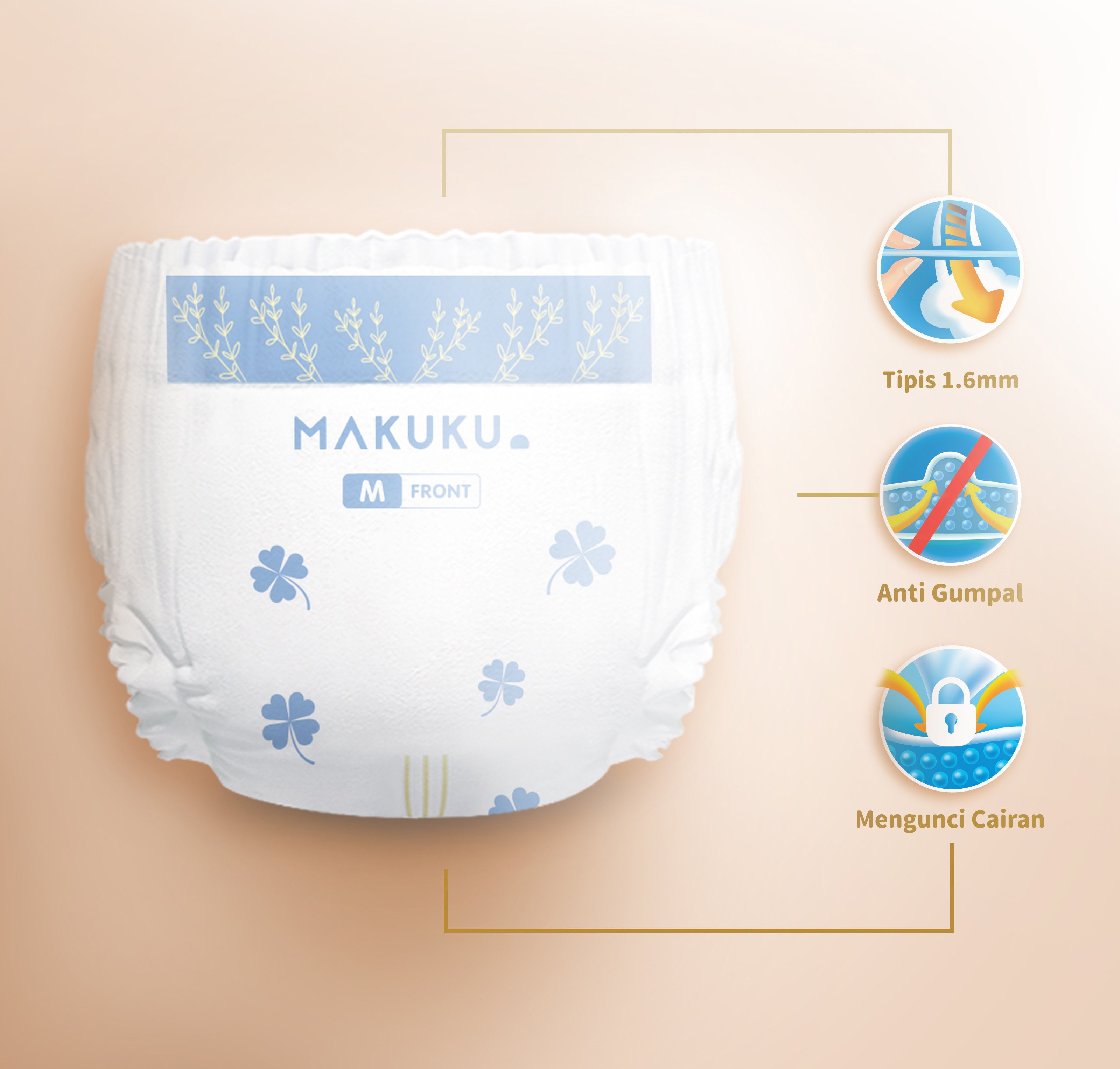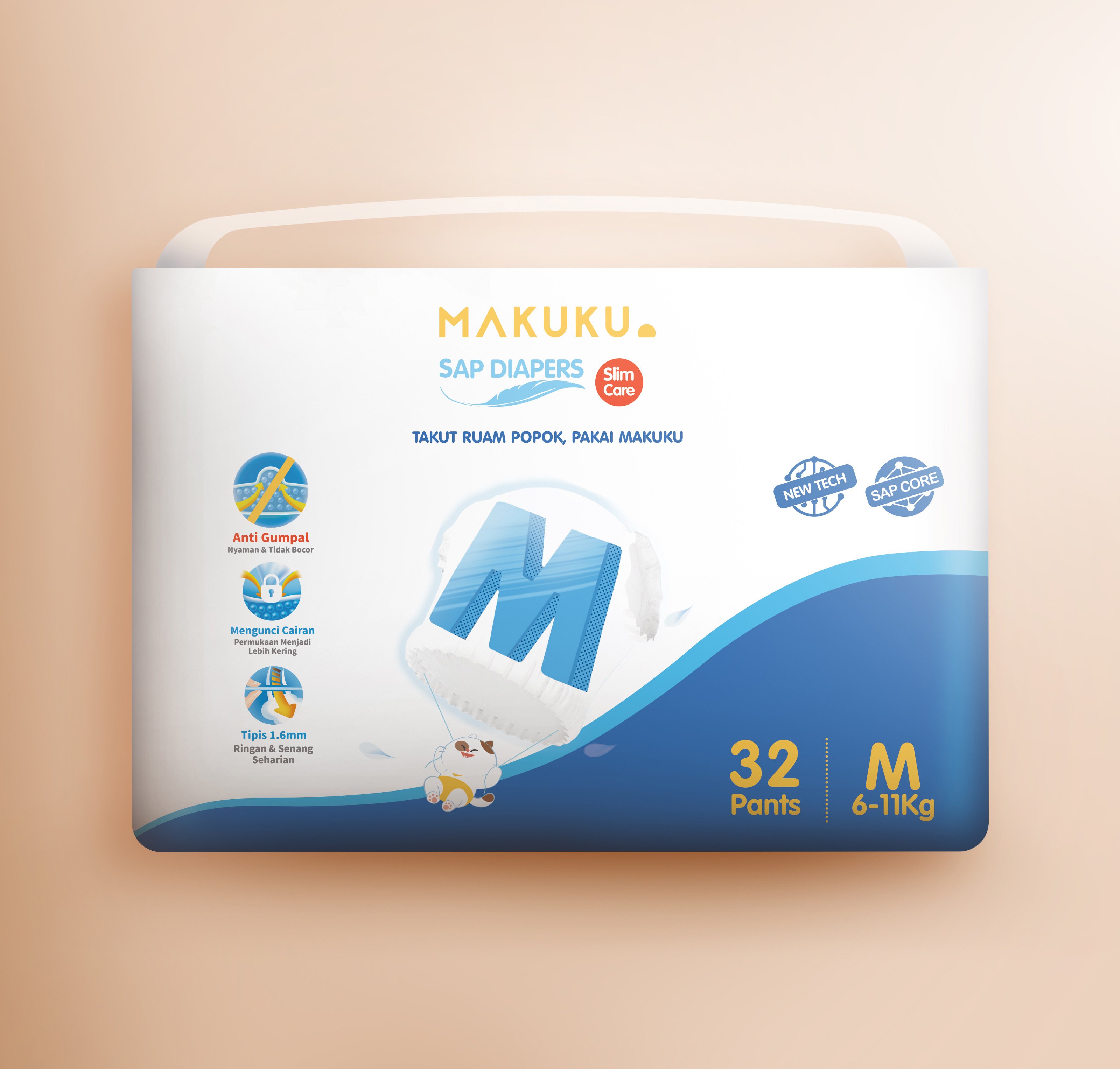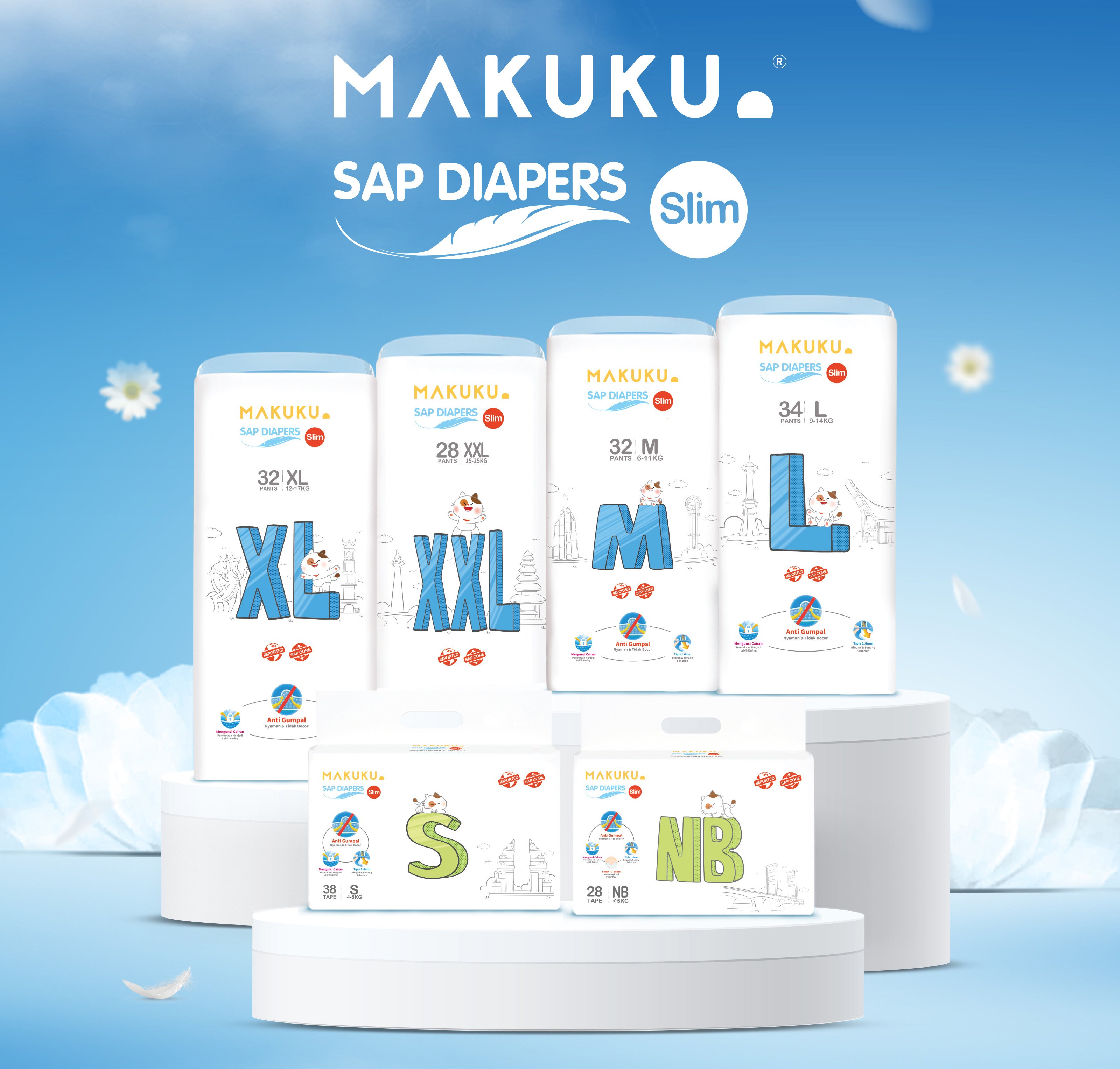 MAKUKU Slim merupakan salah satu rekomendasi popok premium yang tipis dan lembut digunakan untuk bayi dan balita. MAKUKU Slim memiliki berbagai macam fitur yang memberikan kenyamanan ekstra seperti tanpa popok.
